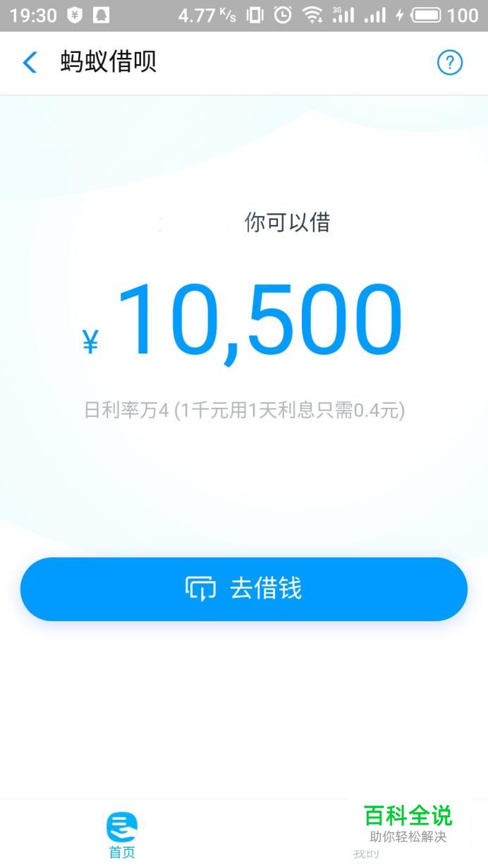 进入蚂蚁借呗界面,查看个人额度,点击“去借钱”