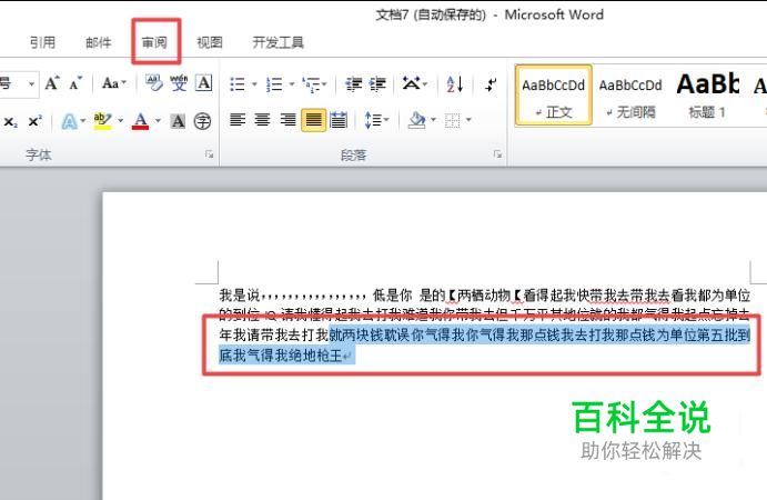 然后我们选中我们需要统计字数的地方,之后我们点击审阅;