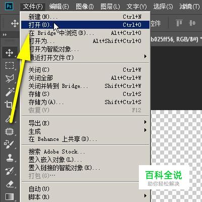 在PS界面的左上方,点:文件,弹出下拉列表,再点:打开