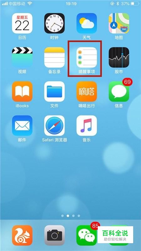 首先在我们的手机桌面上找到提醒事项并点击它,如下图所示。