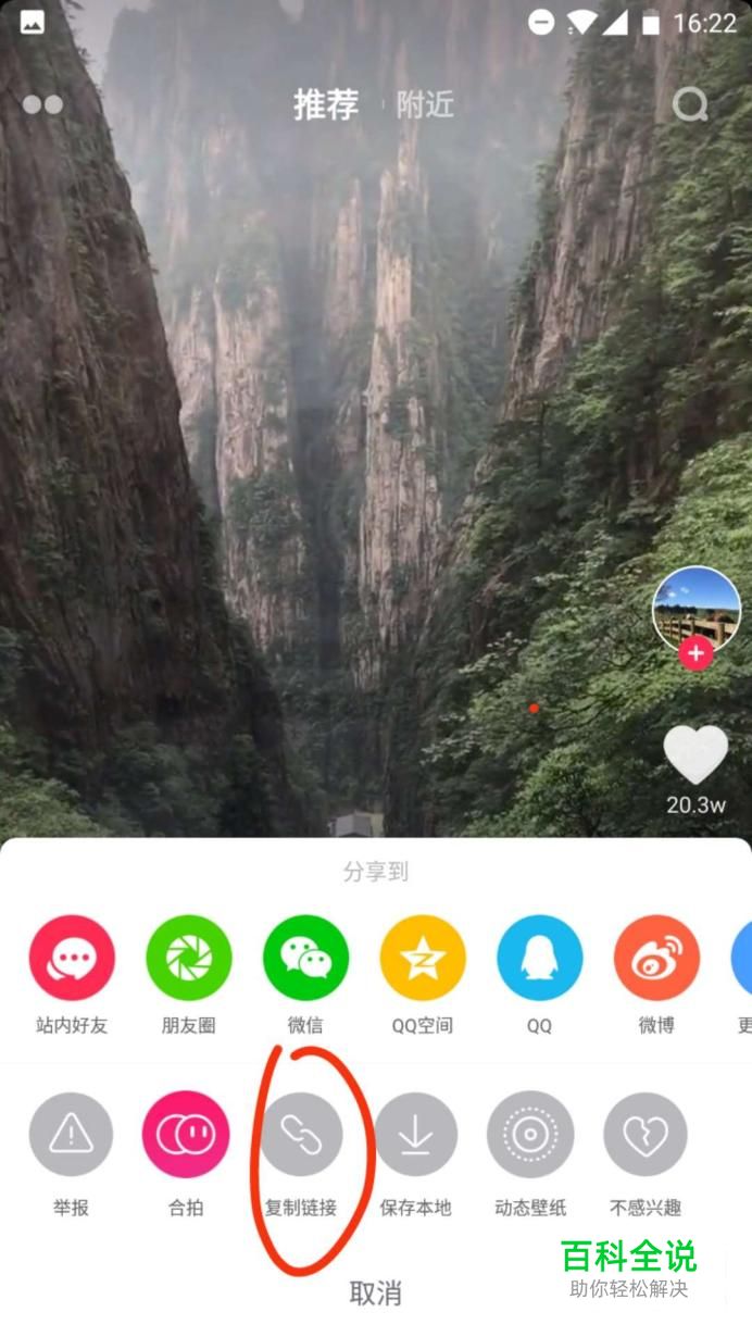 在分享按钮中,如果直接点击“保存本地”会发现视频上有水印,这个时候就需要点击“复制链接”