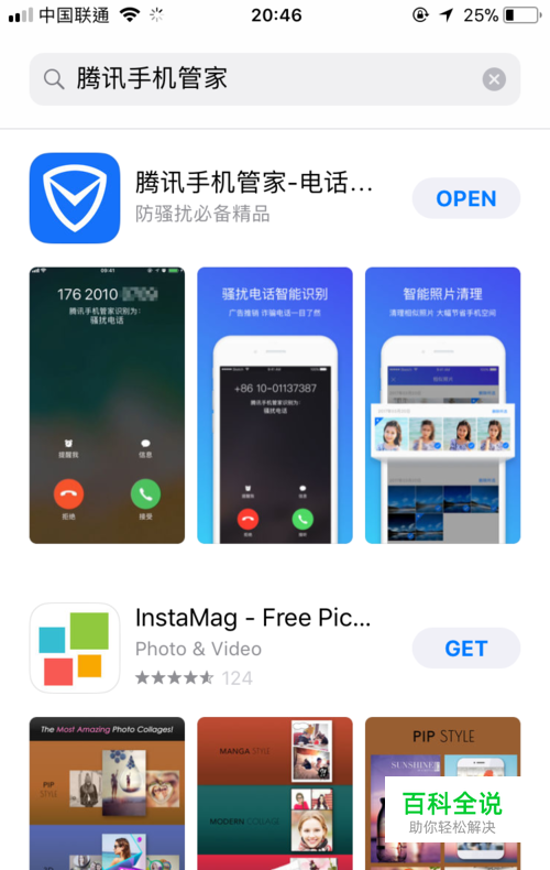 在App Store中搜索并下载腾讯手机管家;