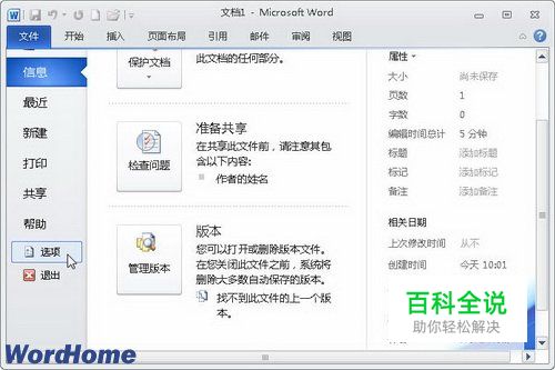 第1步,打开Word2010文档窗口,依次单击“文件”→“选项”按钮,如图2009121205所示。图2009121205 单击“选项”按钮
