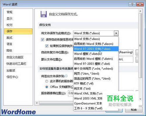怎样在Word2010中默认保存为Word2003 DOC文件