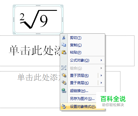 由于公式的颜色是黑色的,而PowerPoint本身又有背景颜色,有时候公式就看不清楚了,这时候直接改变公式本身的颜色。