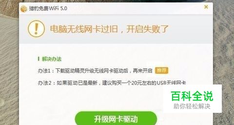 关于升级win10后开启猎豹等wifi共享工具显示无线网卡版本过旧,开启失败的解决办法。