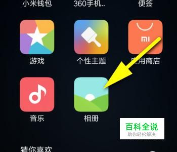 在手机上,我们找到“相册”;手指轻点一下,转到相册的页面中。