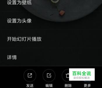 在这相册里,展示着多张照片。手指轻点一下其中一张。这时,在屏幕的底部展开了一行菜单。