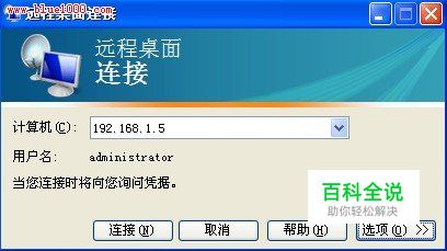步骤1:打开远程桌面连接程序,输入远程计算机的IP地址,之后就点击【选项】按钮进入图2操作界面。 (图1:)