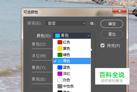 打开可选颜色工具,分析图片中有哪些颜色。