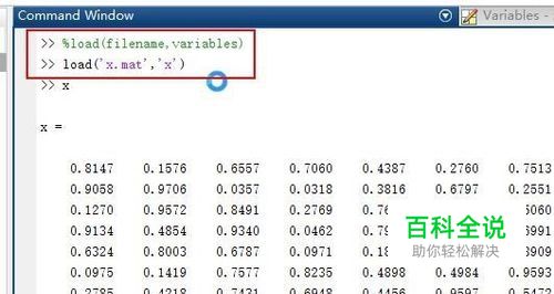 我们也可以使用较为简洁的方式 即load +filename的形式 比如load x.mat