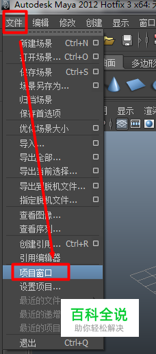 打开maya,使用其中的“文件”菜单下的“项目窗口”栏,如图:
