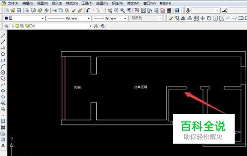 当需要测量的是 规则图形时,如图阳台;可直接输入命令【rec】矩形命令;即黄色线范围;