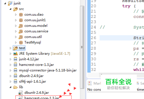 导入junit测试需要的依赖包。首先创建一个java Project;将 junit包和hamcrest-core包导入到项目中,如果是maven项目则需要搜索对应的依赖pom内容。