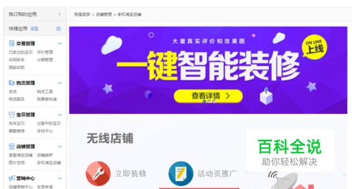 第一步:打开【卖家中心】,在卖家中心左侧菜单栏里有个【手机淘宝店铺】