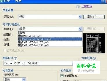 打开CAD,点击文件→绘图仪管理器→添加绘图仪向导→下一步→下一步一直点下一步到完成。在打印机名称里有一个Postscripq Level 1.pc3