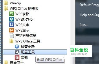 进入开始菜单\所有程序\WPS Office抢鲜版\WPS Office工具,点击“配置工具”。