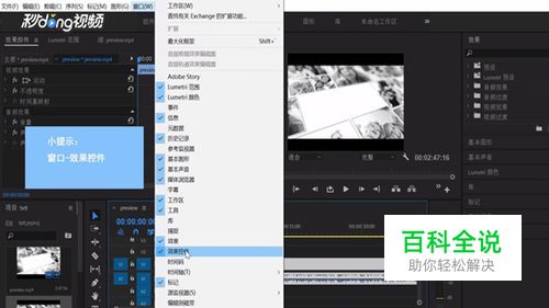 如果未显示,则点击上方“窗口选卡”,点击“效果控件”。