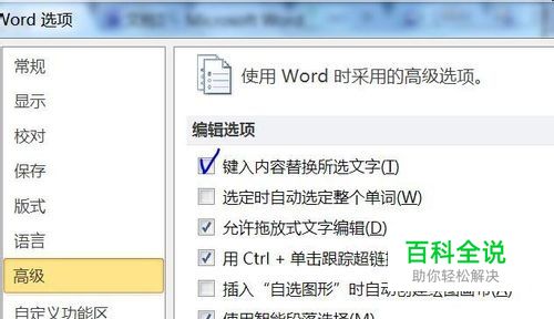 然后勾选“键入内容替换所选文字”,看一看问题是否解决。这个方法肯定能删除选中的文字。