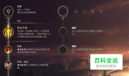 我们的主符文自然要选择精密,然后选择致命节奏,凯旋,欢欣以及致命一击,这样加点,可以让我们在后期团战的时候更加有优势,而且又肉又有输出。