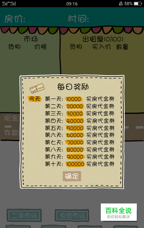 初始我们只有3000的本金,我们可以通过每日签到获得买房代金券,进入游戏时 可增加初始现金,本金很重要,可以使我们有很多优势。甚至最后买到海岛等
