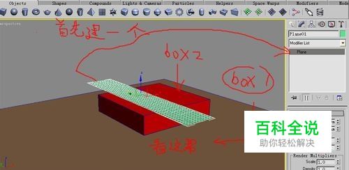 首先在3D里面建两个BOX,一个作为茶几,一个作为地面。再在茶几上见一个PLAN,作为布,注意细分。如下图。
