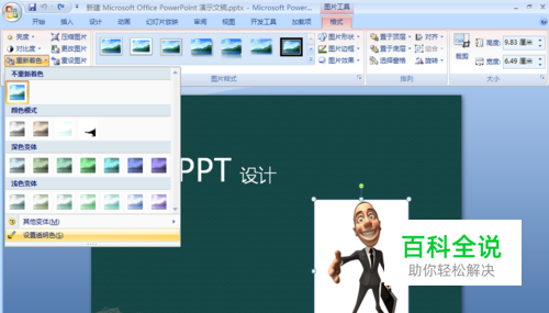 PPT设计过程中,经常会遇到插入图片的问题,有时候一张图片背景如果没有处理好,就会显得很突兀,这时候若将图片的背景色设置为透明色,那么整个PPT的配色就会非常和谐。