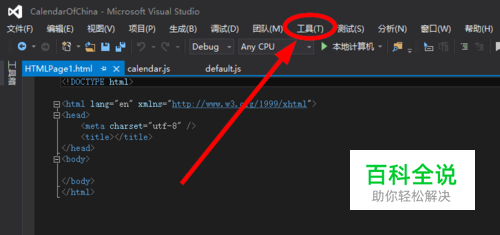 打开visual studio 2015,在菜单中点击“工具”