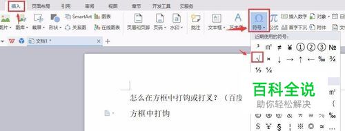 下次如果我们还需要方框中打钩的话,直接在插入中可以插入这个符号。