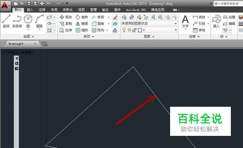 打开Autocad软件,新建一个图形,随意画一个三角形作为示例,准备将最右边的边线(图中红色箭头所指)由实线改为虚线