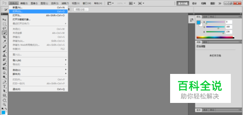 双击点开PhotoShop CS5软件,打开后点击文件--打开--选择照片