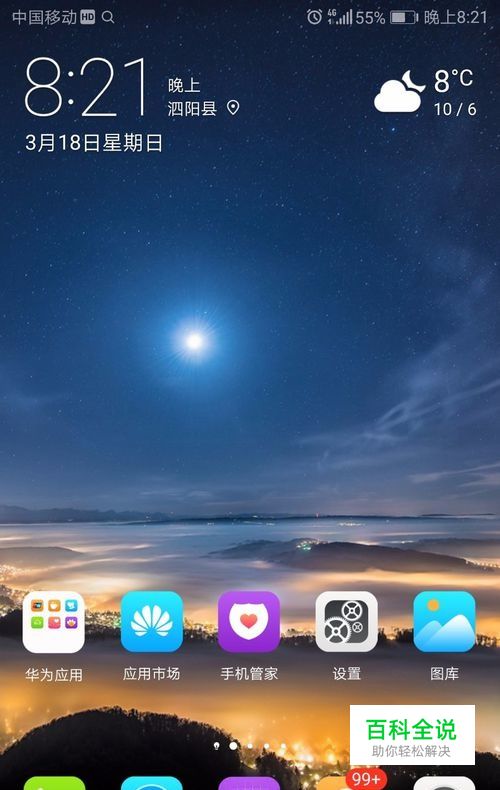 首先我们先打开华为mate10手机,如图,我们从屏幕的中间部分往下滑动