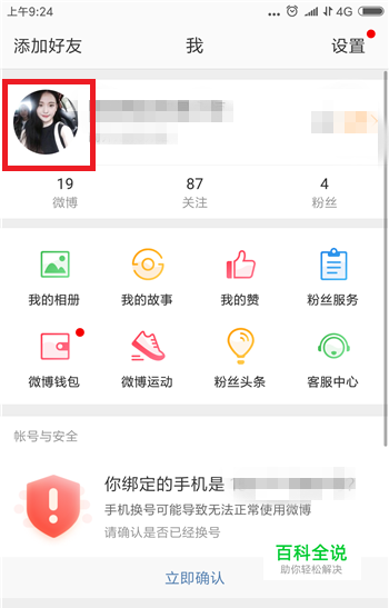 进入到微博的个人中心界面,在顶部的位置可以看到我们账号的头像,点击头像。