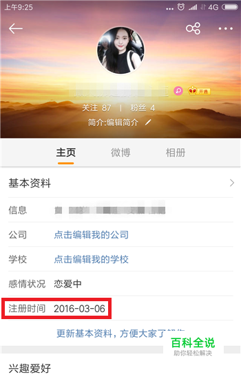 进入到微博主页后就可以在基本资料中看到【注册时间】选项了,后方的时间就是我们微博的注册时间。