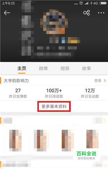 想要查询别人的微博账号注册时间是一样的,先打开他的个人主页,在主页下方点击【更多基本资料】。