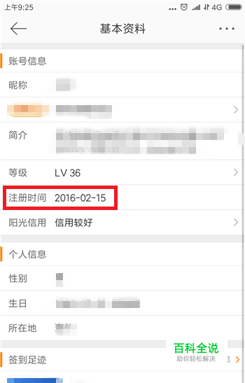 点击后会打开基本资料界面,在这里就可以查看到别人的注册时间了。