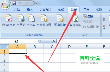 选中A1单元格后,点击上方菜单栏中的数据选项。
