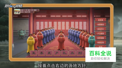 开始上朝后点击下方的“户部”,接着点击右边的“各地方针”。