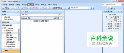 首先打开outlook邮箱,进入主界面,点击工具按钮