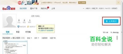 首先我们进入到百度相册,进入百度相册需要注册一个百度账号,然后就进入到个人百度相册了。现在找到一张需要上传的图片,在百度相册上点击【上传照片】即可将该图片上传的百度上面了。在上传的时候是需要填写自己的描述标签,这样不管是自己还别人都可以通过这个标签来找到这个相片了。如图所示: