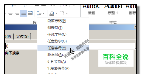 接着, 在以下项中查找,弹出的菜单中点 主文档 这时,文档中所有括号和括号里面的字母都被选中