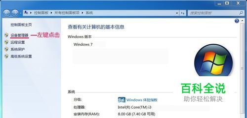 Windows7系统能上网但右下角网络图标异常的解决方法 第一步:卸载已经安装的全部网络适配器设备。 右键桌面计算机 - 属性,打开系统窗口,在左上方找到:设备管理器,并左键点击:设备管理器;