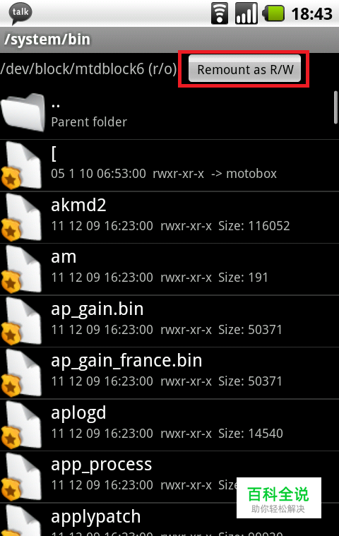 浏览到/system/bin/目录 点击屏幕右上角的 remount r/w 按钮(新版本的root explorer 是mount R/W好像,反正按来按去,能贴上就行)