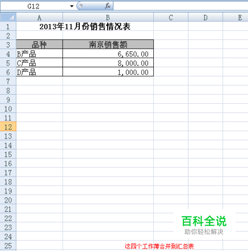 表中有4个包含数据的工作薄,现在要把它们合并到汇总工作薄中