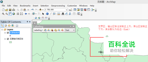 将“莱山区”放到点要素符号的正下方,如下图所示: