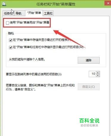进入任务和开始菜单属性的界面后点击【开始菜单】选项,然后把使用开始菜单而非开始屏幕勾勾去了。再注销一次就可以了。