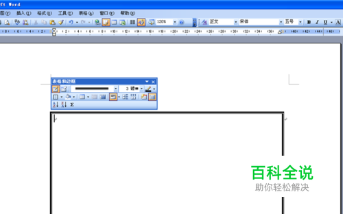 表格和边框的选项卡自动弹出,鼠标变成了铅笔的模样。先点击设计边框线,然后按住鼠标左键,当铅笔变成十字形时,拖动鼠标划出表格的外边框。