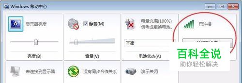 这时候就会跳出一个Windows移动中心,在右上角有一个无线网络的连接开启和关闭按键。