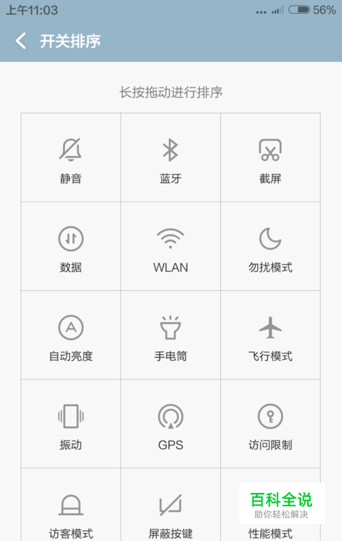 在使用手机的时候可以根据个人使用习惯和喜好进行快捷键的设置,比如屏幕下拉菜单的排列顺序,那么今天给大家介绍一下如何进行调整排序