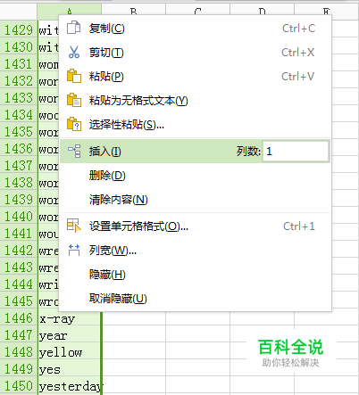 如果只有几行,每一行的后面插入一空白行,你可以逐行插入,但如果有很多,比如我导出一个VOA1500单词表,有1千多行,工作量就非常大,这里分享一个快速插入空白行的方法。示例采用wps2013,excel也是一样的。
